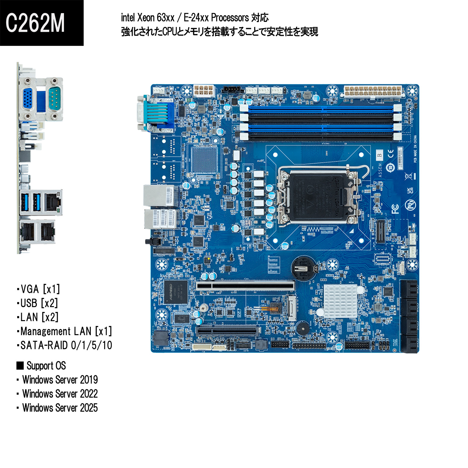 ≪Xeon E-2300 シリーズ対応≫ サーバー/ワークステーション向けに最適な高信頼設計。IPMIによるリモート管理機能を搭載。 |