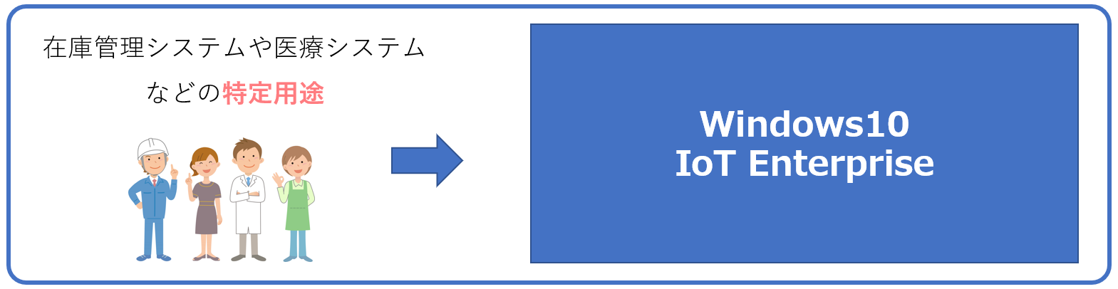 在庫管理システムや医療システムといった特定の業務アプリをご利用の場合は「Windows10 iot Enterprise」の機能アップデートを行わないLTSCモデルを使用することで同じOSバージョンで安定したシステム運用が可能です。