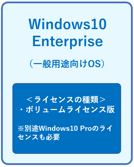 Windows10 Enterpriseのライセンスは「ボリュームライセンス版」となり、別途Windows10 Proのライセンスが必要となります