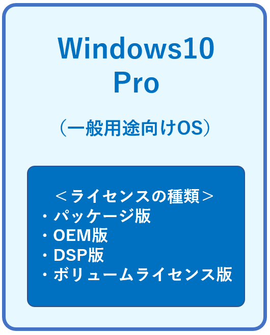 Windows10 Proでは「パッケージ版」「OEM版」「DSP版」「ボリュームライセンス版」からライセンスを選ぶことができます