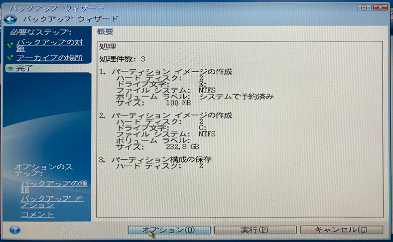 ・バックアップ用アプリが起動(Acronis)