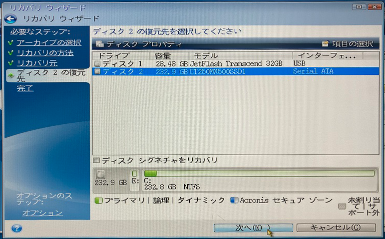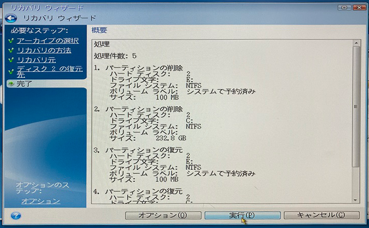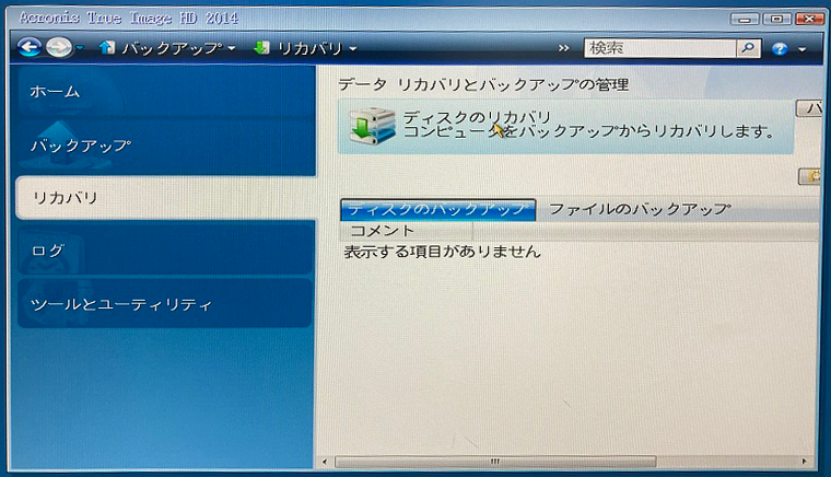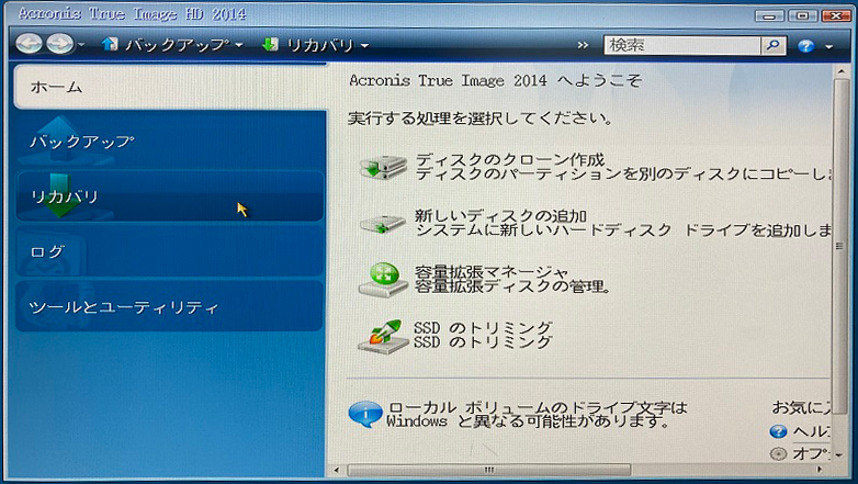 ・リカバリ用アプリが起動(Acronis)