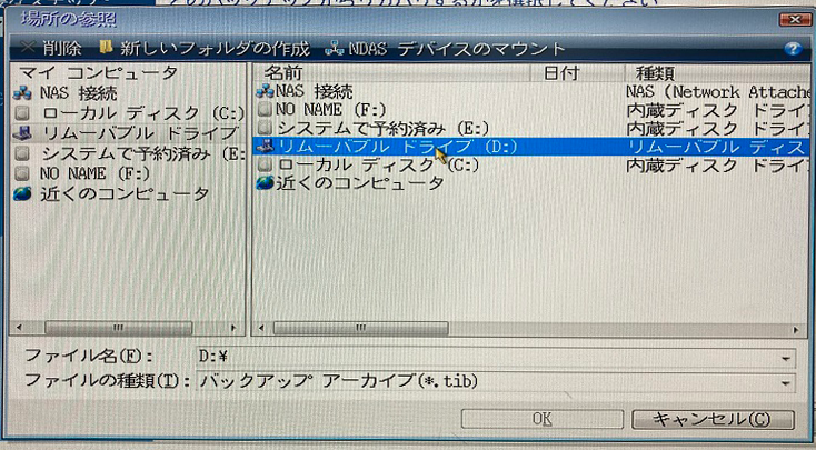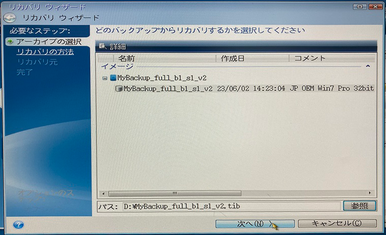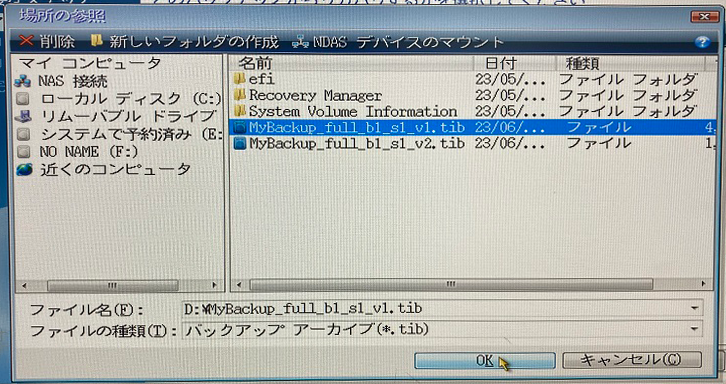 イメージをバックアップしたtibファイルを選択