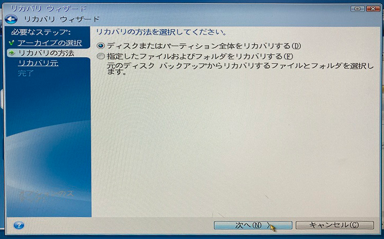 【バックアップしたイメージでのリカバリ(復元) 】